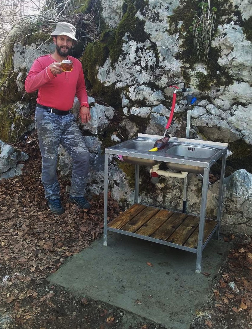 Na kompleks doma dovedena je pijaća izvorska voda koja je u zimskom i proljetnom periodu vrlo izdašna i može se koristiti neograničeno, dok je u ljetnjem periodu stalno prisutna ali uz mjere štednje iste. Vodom je opskrbljena spoljna sudopera koja se koristi za pripremu hrane kao i za pranje posuđa, a opskrbljene su i kabina poljskog wc-a i tuš-kabina gdje je akumulirano 1.2 kubika vode koja se pasivno podgrijava zavisno od sunčanog dana.