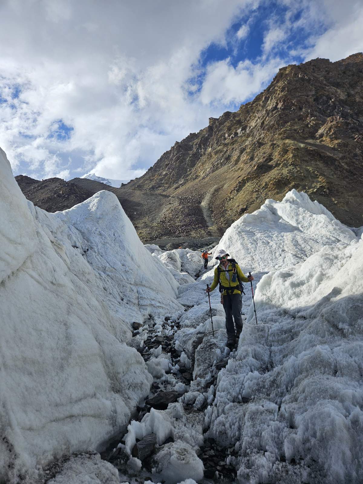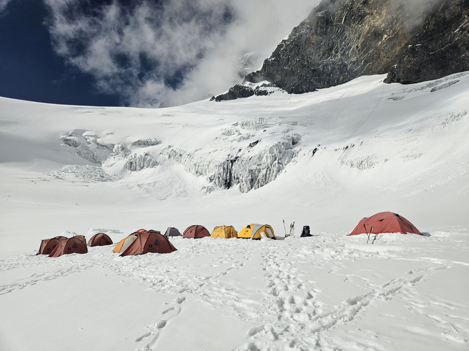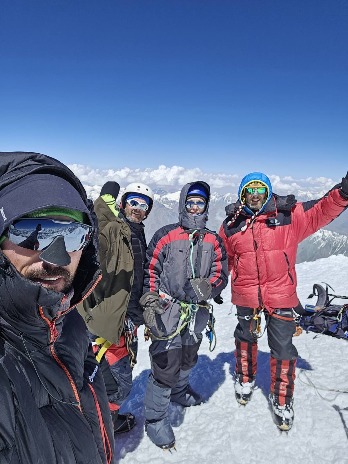 „Pozdrav Društvo! Novi dan nova nafaka! Što bi rekli počelo je nešto da se šuška u državi “Pamir”. Do sinoć u mrak većina vodiča i portera se vratila u bazni kamp. Vidimo jutros počelo pospremanje opreme i užadi za “fikseve” za Komunizam! Dio vodiča od strane organizatora zadužilo je užad za smjerove. Po našoj pretpostavci od 300-400m. Vjerovali ili ne ovo je samo da se pretekne nekako. To je samo za nužne pozicije, a za stvarnu bezbjednost ko zna koliko bi trebalo! Dio naše tehničke opreme iz lagera sa C1 (sa prethodnog uspona), stigao nam je danas, a ostali dio će sutra tokom dana. Tako da i nama brzo slijedi pakovanje i pokret. Juče su pukle dugo očekivane dvije lavine. Jedna između ABC-C1 (manja) i C1-C2 (za nas povoljnije veličine). Voljeli bi da ih ima više, ali šta je tu je. Dva su dana još dugo. Snijega ima u ogromnim količinama i dalje, ne proprćenog! Nigdje ga nema da drži površicu osim na ledenim zidovima i traverzama! Sve se vrti o poželjno većem zajedničkom broju penjača na usponima. Ovaj put uspon planiramo odraditi “Alpskim” stilom bez aklimatizacionih varijacija. Moguće spavanje u jednom u visinskih kampova dvije noći radi konsolidovanja stanja. Saturacija u krvi nam se primiče 93-95%, što nam da je dodatno samopouzdanje. Korzhenevskaju smo popeli sa 85-89%! Polako vraćamo kilažu na fabrička podešavanja. Na “Okinavi” nema šta drugo da se radi nego da se jede, dok se čeka! Pozdrav do sutrašnjeg javljanja (ne u ovolikom obimu)!“