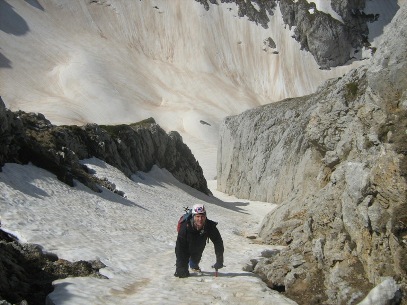 Uobičajeno mjesto za odmor ispod visokog bora na maloj zaravni ni ovoga puta ne zaobilazimo. Pauzu koristimo za montiranje dereza kako bi što lakše i brže napredovali dalje. Dolazimo na prevoj iznad Đedovog dola na 1950 m, odakle malo gubimo na visini i ulazimo u prostrani cirk ispod vrha sa jugozapadne strane. Sve je zaliveno debelim naslagama snijega iz koga vire samo kamene gromade u podnožju velikog sipara. Na završni uspon krećemo dobro poznatim eksponiranim kuloarom koji vodi gotovo do samog vrha. Snijeg je bio baš kako treba pa smo zaista uživali i brže nego ikad ispenjali 200 metara visinske razlike u kuloaru. Dalje prema vrhu staza je bila suva i bez snijega. Za uloženi trud, planina nas je na vrhu nagradila prekrasnim vidicima na sve strane i gotovo sve planinske masive u Crnoj Gori.