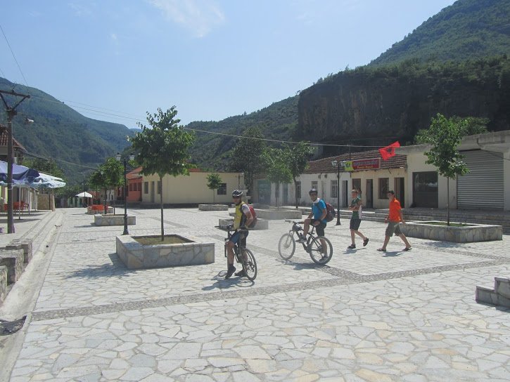 U Tamari pravimo pauzu, u oazi koja kako Boris kaže liči na podgoričku hercegovačku ulicu. U nastavku fenomenalni novi magistralni put koji vodi do Skadra, ali se mi nakon nekih 7,5 km odvajamo desno na makadamski put koji vodi ka Crnoj Gori, gdje će biti izgrađen granični prelaz između Crne Gore i Albanije. Dva kilometra vožnje makadamom i kilometar guranja bicikla doveli su nas na našu teritoriju, gdje proslavljamo uspješan prelazak granice.