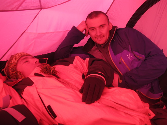 Iscrpljen i bez živog damara u sebi u dom stižem poslije 22 h, nakon 15 sati planinarenja u užasno teškim uslovima snijega i jakog zračenja. Većina „stanara“ doma su već u krevetu. Boris ne propušta priliku da me slika, jer fotografija prilično vjerno pokazuje u kakvom sam stanju. Kaže da su očekivali da ću prenoćiti negdje u planini i ujutru nastaviti do doma.