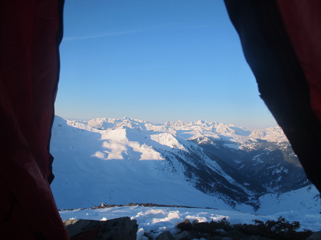 Boris i Fema prihvataju predlog tako da ostajemo ovdje, na vrhu. Postavljamo šator i uživamo u pogledu u ostatku dana. Zalazak sunca za prokletijske vijence i grebene pruža jedinstvenu sliku i osjećaj koji je riječima nemoguće opisati. Širina i prostor beskrajnih sniježnih kolosa, zatalasanih dolina, to vječito uzburkano kameno more, zaleđeno u svom nemiru, ta strast moćne prirode koja struji venama posmatrača odaju utisak snage i veličine pred kojom je teško ostati ravnodušan. Kamene piramide zaogrnute sniježnim plaštom, stjenovite vertikale na kojima se ni pahulja ne može zadržati, zaleđena jezera u zatalasanim dolinama, crvenilo neba u različitim vatrenim nijansama, šuštanje šatora na blagom povjetarcu i duboko udisanje reskog vazduha, doživljaj su kojim smo privilegovani, ovdje u srcu goropadne planine. Planina je hram za sva božanstva i sva vremena. Hram u koji ulazimo po mir i ljepotu, po onaj osjećaj neprolaznosti koji se nigdje drugo, i nigdje tako, ne može spoznati. Ovaj trenutak, ova noć, i ovaj pogled sa vrha Tromeđe na bezbrojne vrhove Prokletija svjedoče i potvrđuju tu emociju…