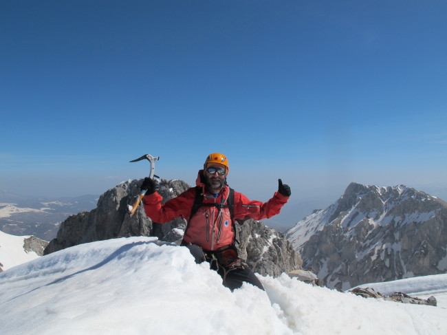 Uslijedilo je slikanje, potom i upisivanje u knjigu uspona na vrhu i tako je odlepršalo bezmalo sat vremena… Ali, teško se odvojiti od svih tih vrhova, od slika koje staju u pogled i želju… Jednu jedinu. Da se nastavi taj put, put vrhova i planina i da on traje. Jer, jedino je to važno za nas koji živimo životom pečatanim prirodom i planinom, vječnom energijom koja se ne može pronaći u drugim dimenzijama ovog šara kojim hodimo i koji nam je Bog dao na korišćenje. Da se nastave ti trenuci koji su iznad svega što dobijamo od života jer oni nose u sebi mjeru slobode, duševnog mira i vječnosti… Da se nastavi ta emocija koje ne prestaje, samo se umnožava novom ljepotom sa svakim korakom, bio on na stabilnom sa pogledom na moćne stijene i padine, bio na krušljivom i uskom grebenu ili sniježnoj strehi gdje je pogled prikovan samo na narednu stopu i gdje se više lebdi nego hoda… To je ta filozofija uspona koji se, u stvari, dešava u čovjekovoj duši u isto vrijeme za koje nam koraci mole planinu za dozvolu da budemo dio nje i uživamo u njenoj ljepoti…