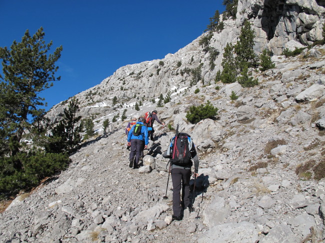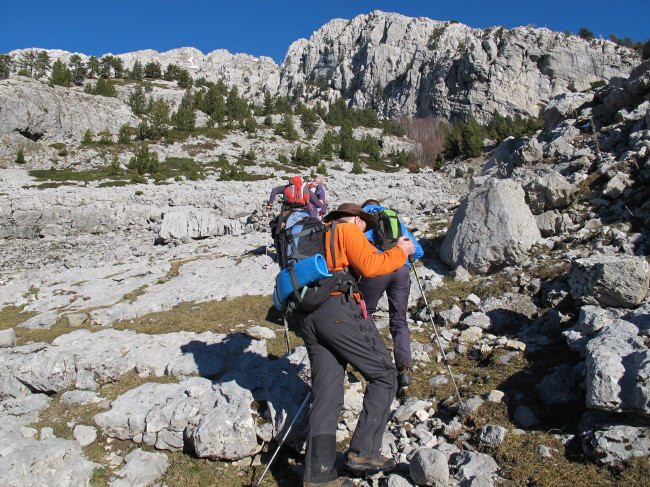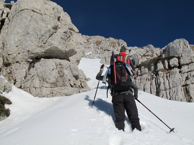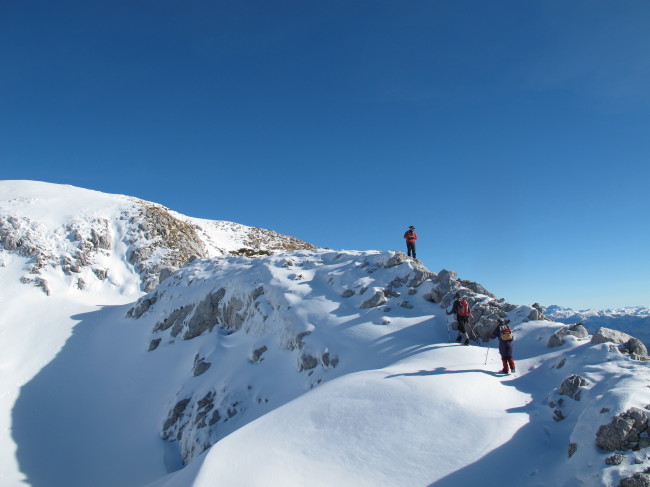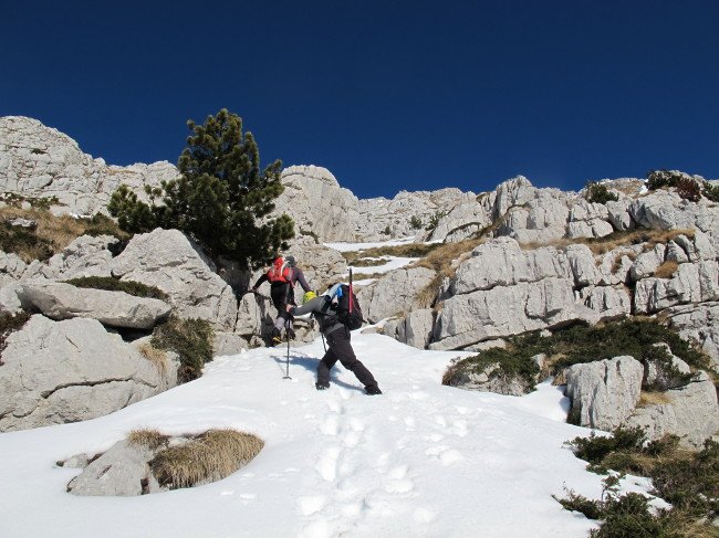 Nakon kratke puze i okrepljenja suvim voćem i hladnom planinskom vodom nastavili smo dalje strmim livadama za koje smo konstatovali da bi mogle poslužiti kao mini ski centar, čime bi se tokom zimskih mjeseci dodatno obagatila planinarsko – turističko ponuda Maganika. Početak ove zime je zbog nedostatku snijega zaista izuzetak, za koji se nadamo da neće postati pravilo, pa smo, umjesto sniježnog pokrivača, na livadama iznad 1400 m vidjeli procvjetalo cvijeće. To što usred zime na planini nema snijega i nije baš pružalo ugodan osjećaj. Posebno ako, poput mene, imate na nogama plastične cipele “Asolo 8000”.