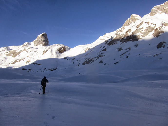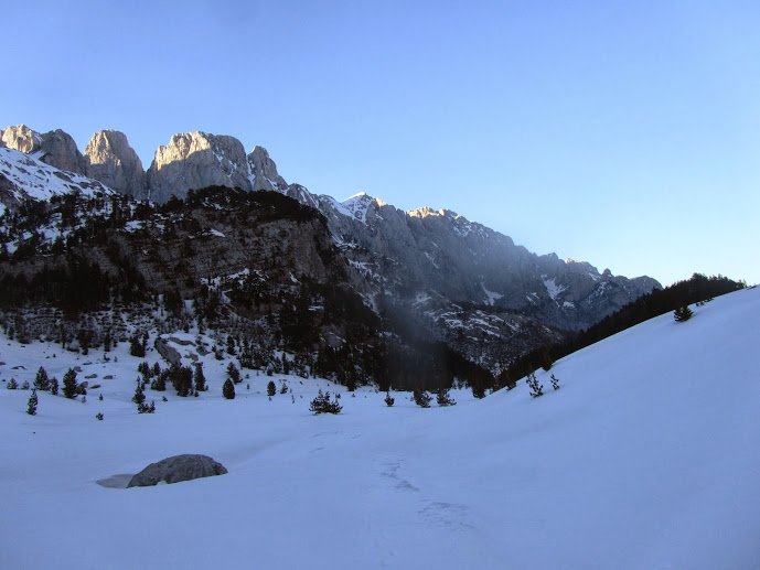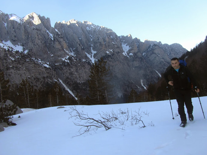 Neno Kalezić iz PK Prekornica i ja pošli smo iz Podgorice za Gusinje i Ropojanu sa ciljem da se oprobamo u zimskom usponu na prokletijski vrh Maja Harapit. Iznenadilo nas je kako ima malo snijega i pogotovo što je Ropojansko jezero suvo, bez vode i snijega. Kolima stižemo do samog jezera i oko 15,10 h krećemo planinarskom stazom „Peaks of Balkans˝ u pravcu napuštene albanske karaule duboko na Runicama kod izvora Seu e Bardhe. Staza kroz šumu je uglavnom suva ili sa tankim slojem snijega, a prvi veći snijeg počeo je na platou Runice. Uspjeli smo da za dana stignemo do karaule, u kojoj smo se i smjestili. Nosili smo i šatore ali nam se učinilo da će nam biti toplije u karauli. Imali smo vremena da osmotrimo okolinu i vidimo koji bi vrh mogli penjati sjutra pošto jeHarapit trebalo peti u nedelju sa Pavlovićem i ekipom iz PK „Radnički“ Beograd.