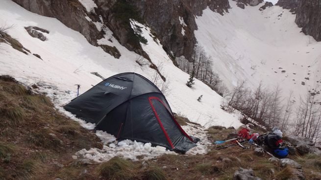 Dobrano smo se naodmarali kada se začuo Tihomir. Gotovo da nas je uplašio, onako polusanjive, uvučene u vreće. Izgledao je kao da ga je izbacila poplava iz 2012.-te… Odložio je opremu i otišao malo naviše da vidi stanje snijega. Nama se nije dalo, sve ćemo vidjeti i osjetiti ujutru…