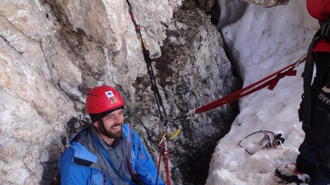 Poslednja dva cuga nam prave najviše problema, kao što smo i pretpostavili. Ne mogu da nađem štand koji smo ostavili, promašujem ga. Ostaje da svjedoči, onima koji ga budu penjali na ljeto visinu sniježnog pokrivača… Spuštam se niže, tražim u stijeni siguran štand ali ništa… Istrošio sam uže, tražim da prevežu drugo. To će biti problem za Marka jer iz mraka će teško absajlovati a da se uže negdje ne zaglavi a ja sam previše otišao da bi osiguravanje odozdo pomoglo, ako krene po zlu. Jer, dužina koju sam povukao je veća od dužine do stijena i vertikale ispod sniježne rampe…