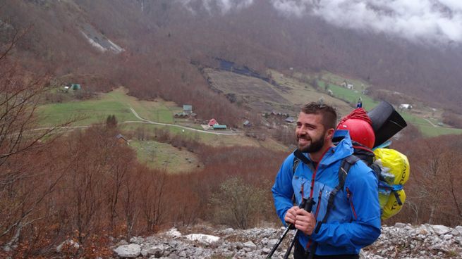 Spolja nas natapa dosadna kiša, iznutra znoj podstaknut šljivom iz „Kolate“. Tihomir nosi „soliter“ pa odlučuje da se prepakuje i ostavi dio stvari i iznese ih iz dva puta. A tek smo prošli trećinu staze. Na prelazu preko stijene, najvećeg izazova na današnjoj stazi, udvostručujemo pažnju. S jedne strane sve je klizavo, mokro, s druge, ranci su toliko teški da najmanja nestabilnost može značiti iskakanje iz balansa. Markov ranac je okićen kao ciganska čerga, imam osjećaj da će, u nekom momentu sve krenuti da se raspada…