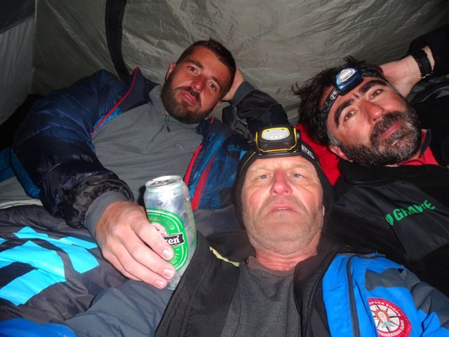 Kod Evlijana, spontano, kreće proslava uspona i činjenice da, nakon sinoćne brige i vanrednog stanja u samom Gusinju, koje je Evlijan zaveo, ponovo zajedno pijemo pivo. Stižu i Varaždinci. Teče nevjerovatna priča o organizovanju ekipe, pretpostavkama, sumnjama, planovima… Teško je prepričati, a da smo to zabilježili kakvim diktafonom, eto nevjerovatne pripovijetke. Bilo je tu svega: „Petro, majku ti j… đe su mi one lampe…“. „Da obavijestimo službu zaštite, no oni su svaki sa stomakom do zuba, pa ko će njih posle vaditi…“ I priča o vrućem hlebu naručenom u pekari, hladnom pivu, spakovanom u ranac i gumenim čizmama kojim su se opremili… I, naravno, nagađanje koji je od trojice preživio. „Adžo, Tihomira sam prežalio, dilema mi je bila koji je drugi… A ovi momci iz Varaždina, strašni. Počeše da vade opremu iz renoa 4, dadoše mi radio vezu a ja ne znam, šta ću sa njom, Adžo, ne umijem da rukujem sa tim. A, ljed te ne ubio…“