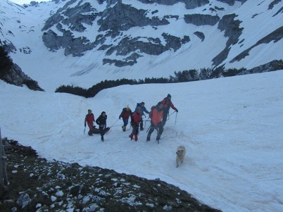 U jednom momentu, kada smo se već bili raspremili u katunu Lokvice, vidjeli smo da se nešto dešava na padini kojom traverzira staza prema katunu. Odmah smo se opremili i krenuli da vidimo šta se dešava. Zatekli smo Miroslava u bolnom grču i dvojicu njegovih klupskih drugara bespomoćnih da mu kvalitetnije pruže pomoć. Miroslav se okliznuo, upao u neku sniježnu pukotinu i polomio nogu koju je prethodno povrijedio.