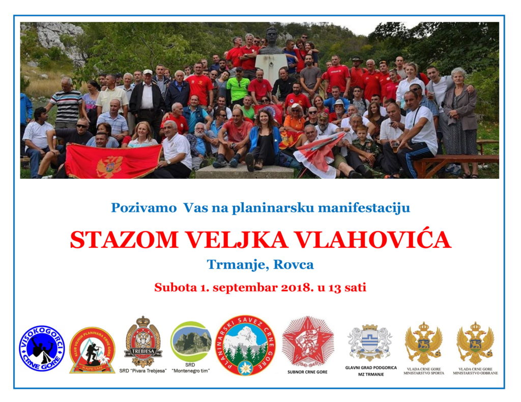 Pozivamo sve planinare i ljubitelje prirode na planinarsku manifestaciju: “STAZOM VELJKA VLAHOVIĆA”, Trmanje, Rovca, Subota 1. septembar 2018. u 13 H.